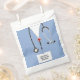 Creative medical-themed nurse party favour bags featuring blue hospital scrubs. Edit text to personalise.