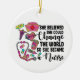 I was extremely happy to find a tree ornament for my Occupational Therapist daughter. (I bought one a few years ago for my Paramedic son) & prior to seeing this I was trying to work out how I could create something similar for her. Unfortunately my first order was deemed lost in the mail which meant it didn't arrive in time to give my daughter when she finished Uni. However the Zazzle Support team were fabulous & organised a replacement quite quickly. My daughter is very happy. Thank you. Nice ornament, love the colours