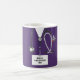 Creative nurse appreciation or graduation keepsake gift mug, featuring purple hospital scrubs. To personalise edit text to add nurse's name.