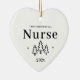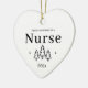 First Christmas as a nurse heart ornament for a new job in nursing. Elegant porcelain ceramic holiday ornaments in white with black lettering. Featuring Christmas trees and stars.