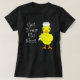 Get your flu shot in curly text with a cute yellow chick nurse holding a hypodermic needle is a funny gift design with a healthcare message.