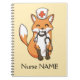 Personalised spiral-bound note book design featuring a cute hand-drawn red fox kit holding a stethoscope and wearing a white and red cross nurse's hat. "Nurse [NAME]" or your choice of text printed below.