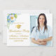 Nurse Gold Blue Floral Grad Party Invite