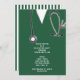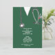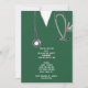 Creative nursing school grad party invites or announcements featuring green hospital scrubs, funny Swiss army knife and stethoscope art.