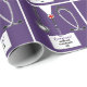 Creative nurse giftwrap congrats design featuring purple hospital scrubs and stethoscope illustration. Edit text to add nurse's name.