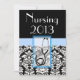 Elegant Nurse Graduation Graduation Announcement Invitations, 2013, Black and white damask with light blue border and black stethoscope emblem. . Fully customisable on front and back.