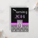 Elegant Nurse Graduation Graduation Announcement Invitations, 2014, Black and white damask with pink border and black stethoscope emblem. . Fully customisable on front and back.