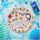 Creative nursing school graduation party plates for nurse grad celebration featuring healthcare supplies and flowers on pink background.