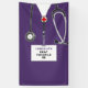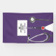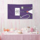 Creative nursing school graduation banner featuring congrats, purple hospital scrubs and stethoscope for nurse grad party. Edit text to add name and medical credentials.