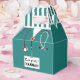 Creative nurse or doctor party favour gifts featuring hospital scrubs and stethoscope. Edit text to easily customise for nursing school or medical school graduation celebration.