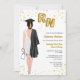 Nurse Graduation Party Invitation. The perfect Nurse Invitation for your daughter, niece, mother, aunt, cousin, or friend who just graduated and is now officially a nurse. Female Nursing School Graduation Invitation for grad parties celebrating women who just graduated from nursing school. Celebrate the new Registered Nurse with this elegant nursing graduation invitation! Featuring a beautifully illustrated portrait of a light skin woman with dark hair in low bun. The nurse grad is wearing a stylish white dress, a black graduation robe draped over her shoulder, and a matching black graduation cap. She holds gold foil style balloons with the letters RN in one hand and a stethoscope in the other hand. Accented with shimmering gold confetti, it perfectly captures the joy and excitement of her big achievement.