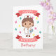 Cute birthday card for your favourite nurse. In the centre of the design is a cute nurse wearing a white uniform and nurses hat and carrying a blue medical file. Above and below her are pink banners reading Happy Birthday in white lettering. Behind her is colourful confetti floating around. Below the design is a template to add the birthday girl's name in dark pink lettering. Inside is the same nurse in the bottom right corner and a template in pink text to add your own birthday message. Also on the back is the same nurse.