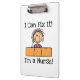 A great clipboard for nurses who love stick figures, features a female stick figure nurse with a giant size bandage and text that reads I Can Fix It! I'm a Nurse!