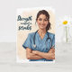 This cheerful and appreciative Nurse Week card features a confident nurse in classic blue scrubs with a stethoscope around her neck, smiling with strength and warmth. The message “Strength wrapped in scrubs” highlights the resilience, dedication, and compassion nurses bring to their work every day. With soft neutral tones and a clean, uplifting illustration style, the design feels both professional and heartfelt. The inside message reads: “Happy Nurse Week! Thanks for Keeping the Rest of Us Alive.” — a lighthearted yet sincere way to recognize the incredible effort, skill, and commitment nurses give during National Nurses Week and throughout the year.