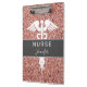 Nurse Medical Caduceus Pink Rose Glitter Name Clipboard