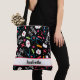 Cute and whimsy nurse art on this large and roomy tote bag will be great for a nurse to carry the things she needs for her shift. Personalise with a name on a white band with red edging that goes across the bag on both sides. The hand drawn lettered words Love a Nurse are accompanied by a stethoscope, colourful bandaids, retro nursing caps, red hearts and white dots on a black background. The whimsy art of Love a Nurse is original art by Phyllis Dobbs. The colours are white, red, black, bright fuchsia pink, lime green, and blue. Fully customisable to personalise.