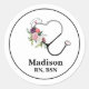 These nurse stethoscope stickers will look cool on envelopes, notebooks, etc. They feature a black stethoscope adorned with pink, purple, and white flowers. A white nurse cap is perched whimsically at the top. You can personalize them will a name or initials.
