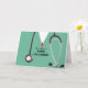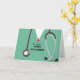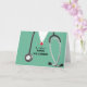 Creative nursing school graduation card featuring medical scrubs design. To personalise edit text to add name of your favourite nurse.