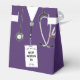 Creative nurse grad party favours featuring purple hospital scrubs design for nursing school graduation party. Edit text to personalise.