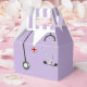 Creative medical-themed favour boxes featuring hospital scrubs and stethoscope for nursing school graduation or creative nurse party. Add text to customise.