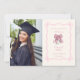Share your milestone in an elegant and feminine way with the Photo Coquette Pink Bow Graduation Announcement. Featuring a delicate pink bow illustration, soft pastel tones, and sophisticated typography, this announcement blends charm and grace. A personalised photo makes it uniquely yours, creating a timeless keepsake for family and friends.