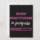 Nurse Practitioner In Progress design. This is a short motivational quote which is great as an appreciation gift idea for Nurse Practitioners. Also suitable as Nurse Gifts.