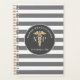Stay organised with your busy schedule using this Nurse Practitioner Medical Grey Personalised Planner. It is modern elegant designed with a faux gold caduceus symbol and grey and white stripes background. Customised text has "nurse practitioner" in all capital letters and signature name is in white trendy handwritten script lettering across the lower front. The text "NP" is on the centre with the caduceus symbol.