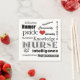 If you're a Nurse, or you know one, this would be a great paper napkin for a party! Features a white background, and words that spell out all the attributes and strengths that nurses in this demanding field must have to be successful. Has a little red heart in there too, because nurses have big hearts!