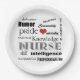 If you're a Nurse, or you know one, this would be a great paper plate for a party! Features a white background, and words that spell out all the attributes and strengths that nurses in this demanding field must have to be successful. Has a little red heart in there too, because nurses have big hearts!