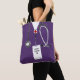 Creative nursing school or graduation bag featuring purple hospital scrubs. To personalise, edit text to add name of nurse or otherwise customise.