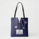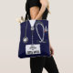 Creative nurse bag featuring navy hospital scrubs, stethoscope and funny Swiss army knife. To customise edit text to add name.