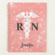 Nurse RN Caduceus Pink Personalised Name Planner is a modern stylish design with rose gold blush pink and white speckled background and a white medical symbol on the centre. The text is "RN" and your name is personalised with in trendy script lettering. Great for registered nurses and nursing students.