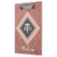 Keep up with your important notes using this Nurse RN Rose Gold Glitter Script Personalised Clipboard. It is modern designed with pink faux glitter background on both sides. The centre has a white caduceus symbol and "RN" on the centre of grey and pink diamond frame. Personalised with name in white trendy calligraphy script. Perfect for a registered nurse graduation gift.