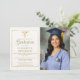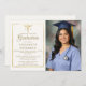 A delicate brushed faux-gold frame, as well as a gold caduceus (digital effect also, not real foil!) are the elegant decorations for this simple, classy, modern nursing school graduation invitation with photo, that you can fully personalise and modify with the name of the school, the degree etc. The large template area allows for plenty of space to include the graduation ceremony location and a celebration afterwards, or customise it simply with the graduation party details.