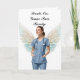 A nurse standing confidently in scrubs with subtle translucent wings formed from soft watercolor brush strokes behind them, symbolizing compassion and protection, light hopeful tones.