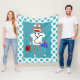 Nurse Sock Monkey Fleece Blanket. sock monkey wearing nurse cap and stethoscope. Background is blue with a blue and white polka dot border. .