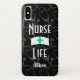 Cute design case for nurses with stethoscope silhouette patterned on background and customisable colour. White nurse's cap with turquoise medical cross centred on case and "Nurse Life" in white typography.