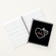Modern,Trendy and stylish notebook features white stripes at the top, "I'm a nurse" white heart stethoscope beneath, personalised monogram & name, personalised "RN" and white stripes at the bottom on black background.