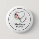This cute nurse button depicts a stethoscope decorated with a white nurse cap and flowers in pink, purple, and white. You can add a name and title or initials.