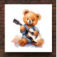 Charming teddy bear playing guitar left-handed (there is also a right-handed version available). Square nursery decor 12" x 12". Would make a great baby shower gift. AI assisted graphic purchased with commercial license. Artwork: MokoDE