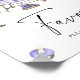 My thoughts on this product was excellent. Well printed in a gloss finishing and just the size l ordered. It arrived in good condition and am overall satisfied with the product. The printing turned out great. I was quite surprised with the finishing touch to the poster. The semi gloss was just right and a perfect size to display at the wedding.