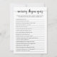 Purchase this game and enjoy high quality Nursery Rhyme Quiz card for your event! Gender neutral Black and White design.