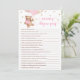 Purchase this editable card and enjoy high quality Baby Shower Nursery Rhyme Quiz card for your event! Pink and Gold Balloons, Teddy Bear. Baby Shower Activities!