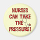 A stethoscope and red text nurse design that reads Nurses Can Take The Pressure! Nurse T-shirts, bags, mugs, cards, stickers, and more for nurses and nurse aides.
