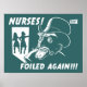 Healthcare comix noir: A senior villain trying to escape the nursing home, with two nurses foiling his dastardly plot! Black and white graphic novel art on t-shirts, hoodies, cards, gifts.