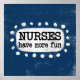 "Nurses Have More Fun" is a cute text design with a white accent shape surrounded by white whimsical dots.