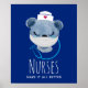 A poster which says: Nurses make it all better. Designed with a cute illustration of a blue bear wearing a nurses hat with a little heart on it. Also wearing a protective face mask and has a blue stethescope too.