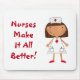 A cute cartoon nurse smiles out at you, with the text in red at the side, Nurses Make It All Better. Perfect for the nurse in your life!