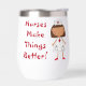 The image of a cute cartoon nurse is repeated twice on this tumbler, along with the text in red "Nurses Make Things Better". There's also a template field for a name. Perfect for the nurse in your life!