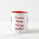 A cute cartoon nurse is on each side of this mug, with the text in red in the middle, Nurses Make Things Better. Perfect for the nurse in your life!